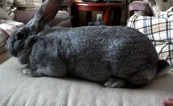 Живіт у здорових кроликів великий і пружний. Наявність будь-яких затвердінь в ньому свідчить про проблеми зі здоров'ям і вимагає негайного лікування. Кролиця повинна мати не менше чотирьох пар добре розвинених молочних залоз. Шкіра здорової тварини еластична. У самців вона трохи грубіше, ніж у самок.