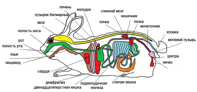 Внутрішні органи кролика покриті жировим прошарком, що захищає їх від механічних пошкоджень.
