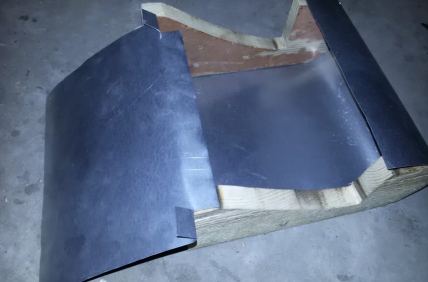 - Два листа оцинковки прикрутити саморізами до прес-шайбі, починаючи з верху задньої стінки.