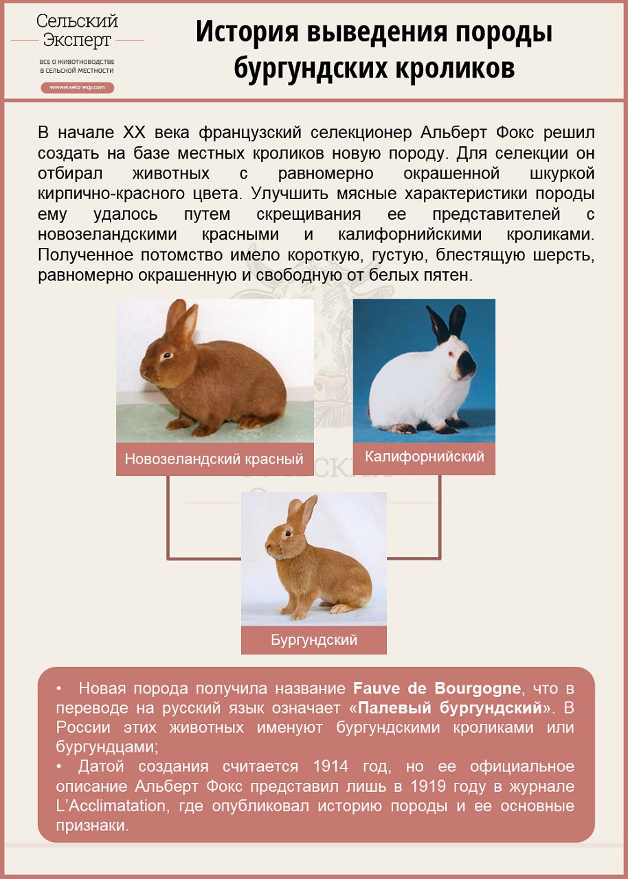 Кроликів палевого окраса розводили в Бургундії з незапам'ятних часів. Тут зустрічалися як чисто червоні тварини, так і особи з білими плямами на шиї, мордочці і ногах. Французькі фермери полюбили цих тварин за витривалість, швидке дозрівання, плодючість і вишуканий смак їх м'яса.