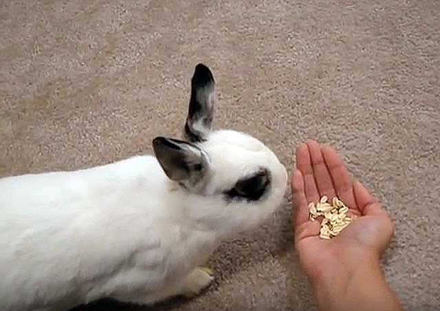 Овес в подрібненому вигляді можна давати кроликам, які тільки вчаться їсти дорослу їжу.