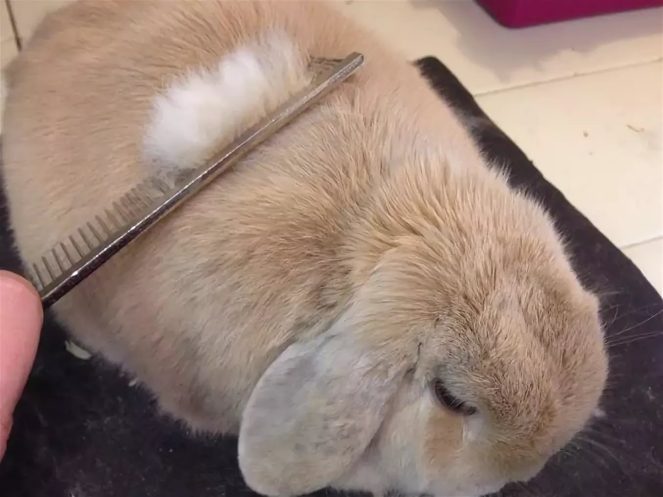 Звірків з короткою і нормальної шерстю досить вичісувати 1-2 рази в тиждень, за винятком періодів линьки. У цей час потрібно видаляти стару шерсть і підшерсток хоча б через день. Довгошерстих кроликів слід вичісувати частіше і стежити за тим, щоб шерсть не збиралася в ковтуни, прочісуючи її по всій довжині.
