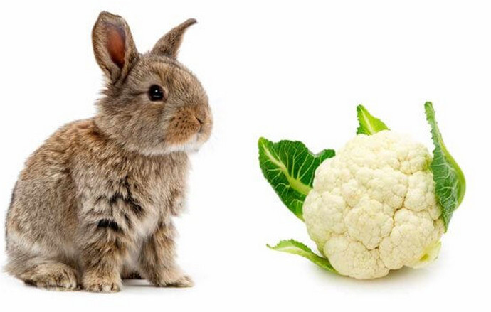 Рослинного білка в Кольоровий капусті більше ніж у білокачанної, в півтора, іноді в 2 рази, аскорбінової кислоти в пару або трійку раз. А головне, в ній присутній глюкорафанін, за допомогою цього органічної сполуки блокується розвиток хвороботворної мікрофлори. Цвітна капуста вживається кроликами в тій же кількості, що і Білокачанна, обидва ці сорти перед подачею можуть навіть відварюватися.