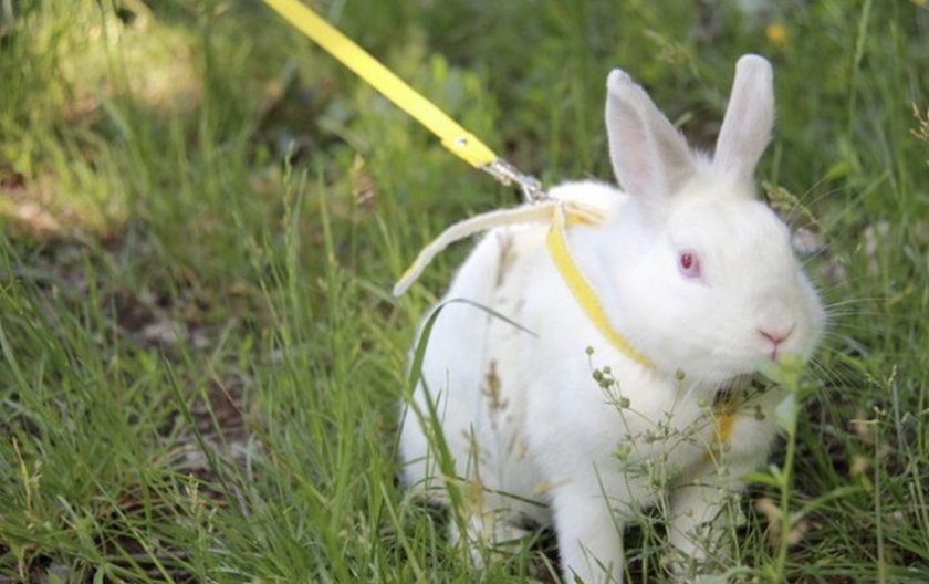 Кролику можна гуляти і на вулиці. Для цього потрібно буде придбати спеціальну жилетку з повідцем.