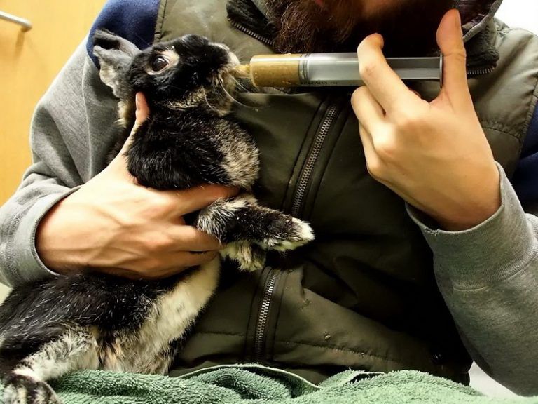 Щоб напоїти кролика ліками, можна скористатися шприцом без голки