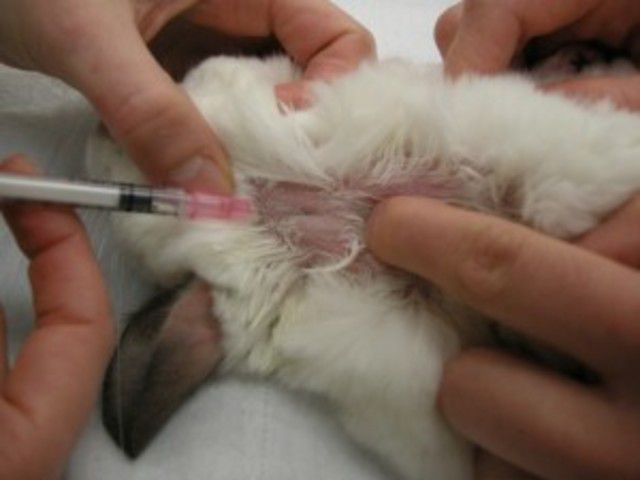 - 1 день – кожному кролику підшкірно вводять гамавит в кількості 1,5 мл для дорослих особин і 0,5 мл молодняку;