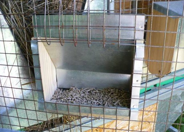 Кріплення ємностей бункерного типу здійснюється по-різному. Хтось монтує кілька штук, а інші вважають за краще використовувати одну містку годівницю. Також свою роль відіграє і кількість тварин в клітці.