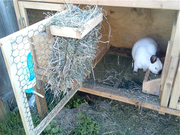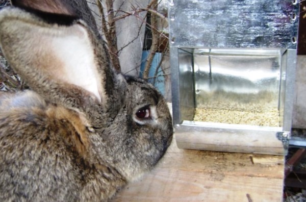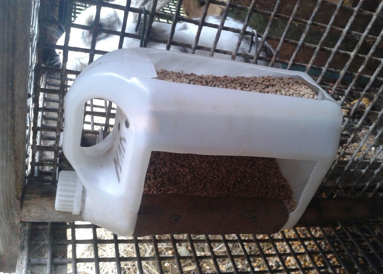- частина годівниці, з якої кролики будуть брати їжу, робиться з металу (щоб тварини прогризли);