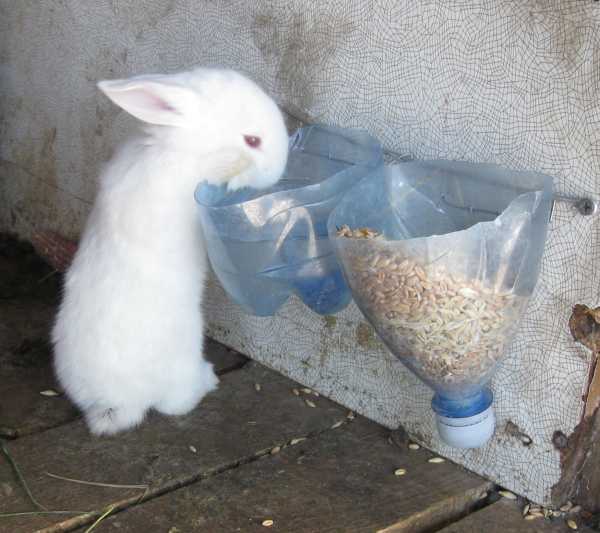 Найпростіший спосіб зробити годівницю для кроликів – це взяти пластикову пляшку і вирізати в ній отвір відповідного діаметру. Можна ускладнити конструкцію, якщо взяти дві пляшки, об'ємом 5 літрів. В одній з пляшок виріжте отвір, зручне для того, щоб кролики брали з нього їжу. Друге отвір, з іншого кінця пляшці, виріжте діаметром, відповідним під горловину другої пляшки. У другу пляшку насипте сипучий корм і вставте її в першу пляшку.Таким чином, корм буде підсипати в годівницю самостійно і довго не потребують вашого втручання.
