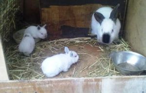 Самка з молодняком. Можна встановити перегородку, щоб самка відпочивала від кроленят