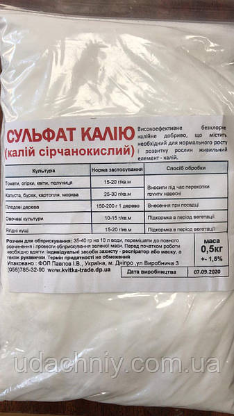 Калій сірчанокислий є однією з найбільш ефективних форм добрив, яка використовується для поліпшення якості грунту і врожайності рослин. Він містить в собі калійний і сульфатний компоненти.