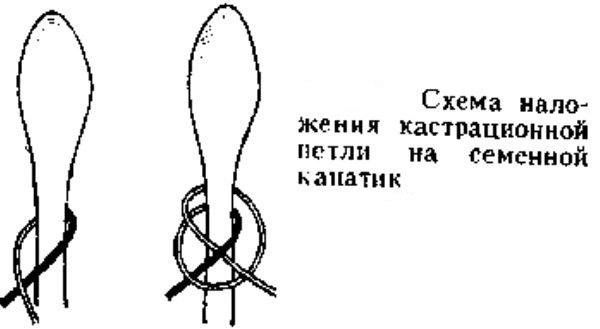 Схема накладення кастрационной петлі на насіннєвий канатик