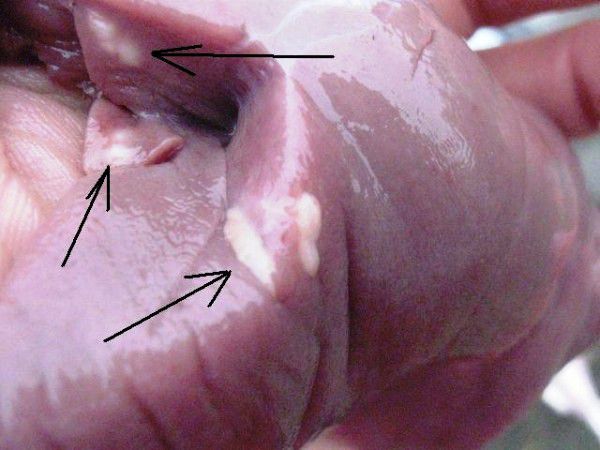 Розглянемо ознаки хвороби, очевидні при розтині загиблих тварин. Слизові кишки стають червоними, набряклими. На них видно білий наліт. Невеликі білуваті вузлики помітні на слизових оболонках. Вони нагадують просяні зернятка, мають сирнистий вміст. Іноді вузлики оточують точкові геморагії.