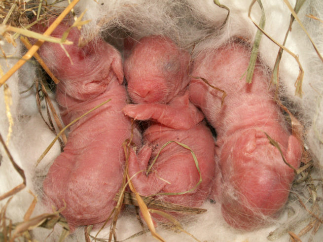 Під час пологів і після них самці необхідна величезна кількість води, якщо цього обсягу не буде, то вона просто знищить своє потомство. Якщо їй не вистачало харчування під час вагітності, то вона теж може з'їсти дитинчат – це все через брак мікроелементів. Таким самкам можна дати друге можливість, але якщо вона знову знищила дітей, то її треба негайно відправляти в розряд кроликів на м'ясо, а не на плем'я. Самка вкрай чутлива до звуків, вони можуть її налякати, що призведе до викидня – мабуть тому пологи і проходять вночі. В ідеалі клітку з такою кролицею треба накрити. Якщо буде шумно, біганина інших кроликів та інше рух, то можете навіть не замислюватися про те, чому все потомство виявилося мертвим. В цьому немає провини кролиці, скоріше, це ваша непередбачливість зіграла злий жарт.