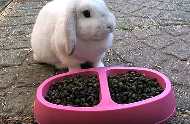 Вухатий звір відмінно їсть таку їжу, оскільки екструдований корм для кроликів легко засвоюється, стимулює апетит, насичує організм, запобігає захворюванням травної системи.