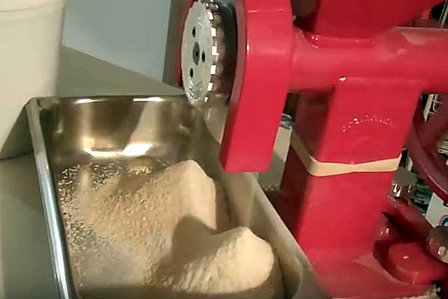 Для подрібнення компонентів корму потрібно м'ясорубка, міксер. Можна використовувати дриль зі спеціальними насадками, які дозволяють переробляти велику кількість кормових складових. Щоб запобігти розпорошення суміші, треба прикривати робочу ємність.