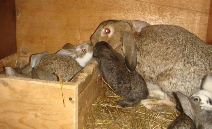 Відгодівельним кроликам потрібно: 150 м сіна, 500 г. коренеплодів, концентрати складуть 80 м в день. Відпочиваючим самців і самок треба: по 150 г. грубої їжі і коренеплодів, а також 40 м концентрованої їжі.