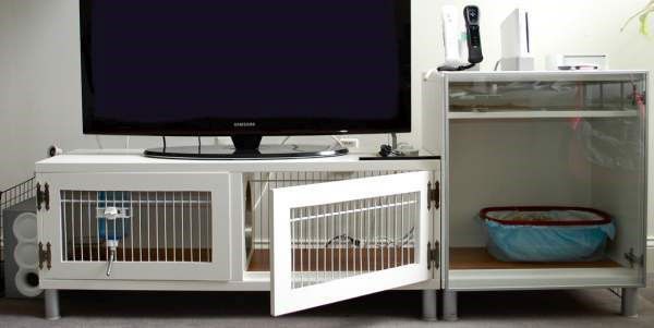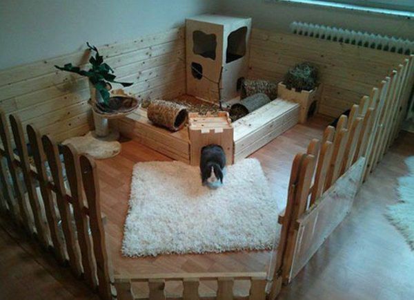 Не всі любителі кролівництва вважають за краще утримувати тварин в клітинах, і в такому випадку можна придбати або спорудити невеликий вольєр в квартирі або у дворі. У магазинах для тварин продають різні конструкції таких огорож. У внутрішній частині вольєра, як і в клітці повинні бути присутніми поїлки, годівниці та інший інвентар.