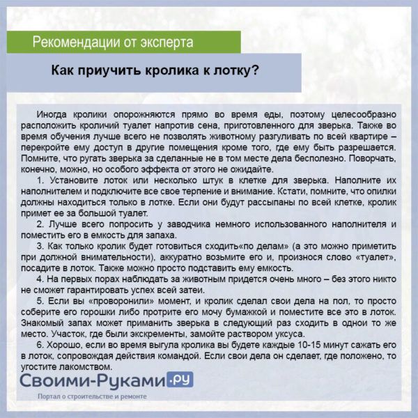 Після заселення в новий будинок важливо забезпечити для гризуна повну тишу – це дозволить знизити ймовірність стресу. Коли кролик звикне до нової обстановки, можна привчати його до своїх рук.