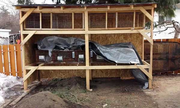 У вітряну погоду кролячі будиночки не повинні продуватися. Відстань від клітин до землі – 0,8-1 м.