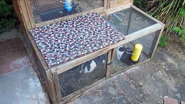 Якщо в будиночку є відсіки, краю проходу між ними потрібно оббити металом. В іншому випадку кролики не забудуть поточити про нього зуби.