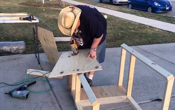 Маючи готові креслення, крільчатник своїми руками побудувати не так вже й складно. Для початку беремо два шматочки куточка і з'єднуємо. Виходить підставу. Далі робимо каркас для кришки будиночка з двох дерев'яних прямокутників. Просвердлюємо отвори, з'єднуємо деталі болтами і гайками. По кутах робимо вставки.