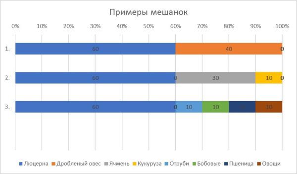 - Продукти, багаті на протеїни: бобові, овес і комбікорм, соєвий шрот і соняшникову макуху.