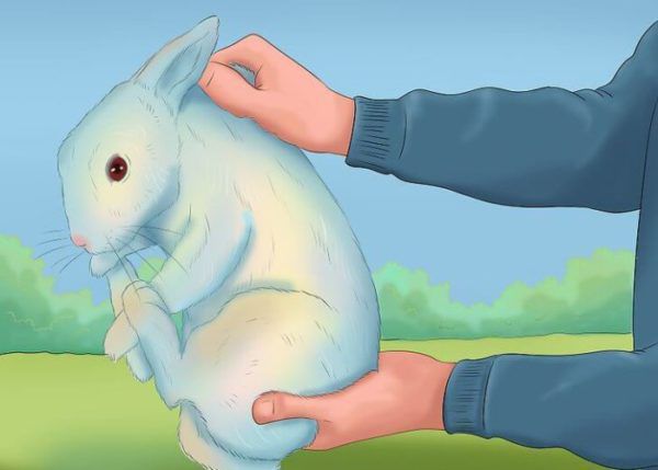 При переміщеннях з твариною необхідно обходитися надзвичайно делікатно. Беруть кролицю за холку і обережно підтримують її за низ спини і задні лапи. Крики і вигуки при поводженні з вагітною самкою вкрай небажані.