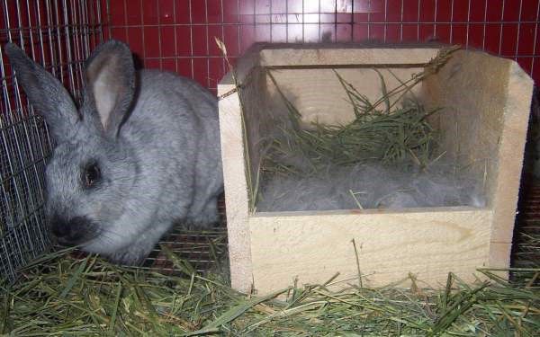 У міру наближення пологів – від 7 до 2 днів, кролиця починає будувати гніздо. Їй буде зручніше, якщо в клітці для цього є невисока перегородка або коробка з прорізом для входу на відстані 8-12 см від дна клітини. Так само у продажу є спеціальні ящички для облаштування гнізда.