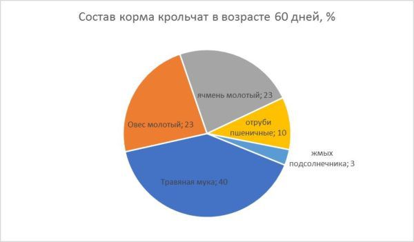Поживність корму підвищується поступово в міру дорослішання кроленят. На ранніх стадіях розвитку дитинчат дають легкозасвоюваний білок і набір вітамінів.