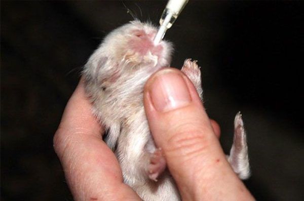 Перший тиждень: коров'яче молоко в співвідношенні 1: 1 c несолодкої згущеним молоком або 100% козяче молоко. Також підходить суха суміш в подвійній концентрації. Годування від 3 до 5 разів на добу, разова доза – 1 мл. Годують з шприца або піпетки.