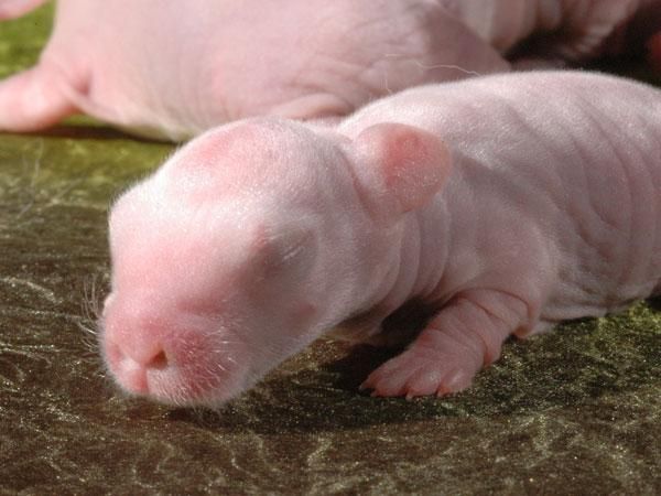 Дитинчата з'являються на світ голими без шерсті, глухими і сліпими. Через два дні у них пробивається шерсть, на десяту добу відкриваються очі. Через два тижні вони починають пробувати тверду їжу, а через місяць готові жити окремо від матері.