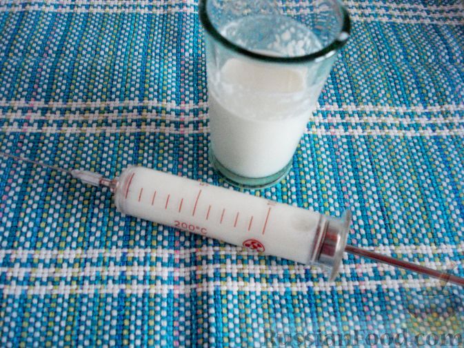 Крок другий: розвести суміш в теплій воді, температурою близько 40 градусів. А потім набрати в шприц потрібну кількість харчування.