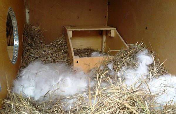 У таких випадках турботу з облаштування гнізда доведеться взяти в свої руки, вискубати у кролиці кілька пуху, укрити їм малюків. Самку в буйної полюванні случают повторно, після чого вона заспокоюється і нормально виконує материнські обов'язки. При повноцінному годівлі самки нормально переносять поєднання лактації і черговий крольності.