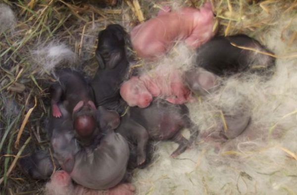 Голодуючих дитинчат видає вугласте статура, скуйовджена шерсть і зморшкувата шкіра. Кроленята неспокійні, пищать, виповзають з гнізда.