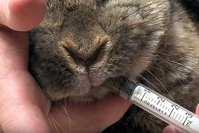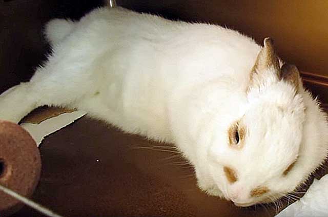 - кролик практично не їсть, передніми лапками постійно чеше носик;