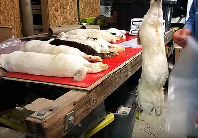 Хутро та шкіру теж можна використовувати в подальшому. Тільки сушити слід якомога далі від кролячої ферми, щоб не заразити все поголів'я. Для боротьби з мікробами шкурки обов'язково повинні зазнати впливу ультрафіолету. Влітку буде досить «сонячної ванни», а в холодну пору можуть застосовуватися ультрафіолетові лампи.
