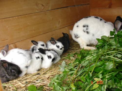 3. Породисті кроленята на продаж. За один приплід самка здатна виносити і народити 6-8 кроленят, в основному все виживають. Середньостатистична кролиця живе до 12 років, і весь цей час вона може приносити потомство. Але після досягнення 4 років продуктивність дещо знижується.