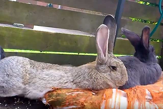 В якості підгодівлі можна використовувати свіжі овочі і фрукти, гілочки фруктових дерев і верби, бадилля, кору, хвою. Зелень краще давати трохи підсушеної – такий продукт легше засвоюється травною системою кролика.