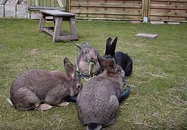 Раціон кролика повинен бути різноманітним і забезпечувати тварина всіма необхідними мінералами і вітамінами. Приблизна щоденне меню для м'ясного велетня – сіно, силос, готовий комбікорм і свіжа вода.