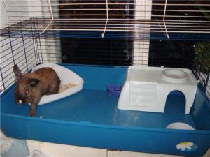 Клітку, в якій мешкає кролик, необхідно чистити не менше двох-трьох разів на тиждень, а лоток – у міру забруднення. Для цих цілей ні в якому разі не можна застосовувати агресивні чистячі засоби, що володіють сильним запахом.