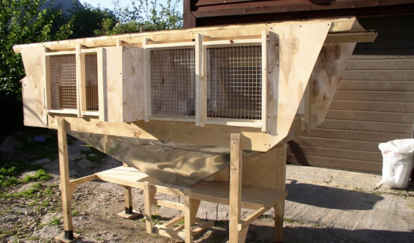 На дні конструкції встановлюють металеву решітку для збору посліду в відведених ємностях, що спрощує догляд за тваринами і мінімізує кількість часу для прибирання (не більше 20 хвилин на тиждень). Стеля такий міні-ферми виконаний під нахилом.