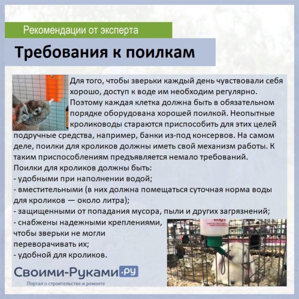 Як би там не було, виготовити потрібніше пристосування для напування вухатих своїми руками можна набагато дешевше, ніж купити їх в спеціалізованих магазинах, так як вартість даних пристроїв завжди завищена.