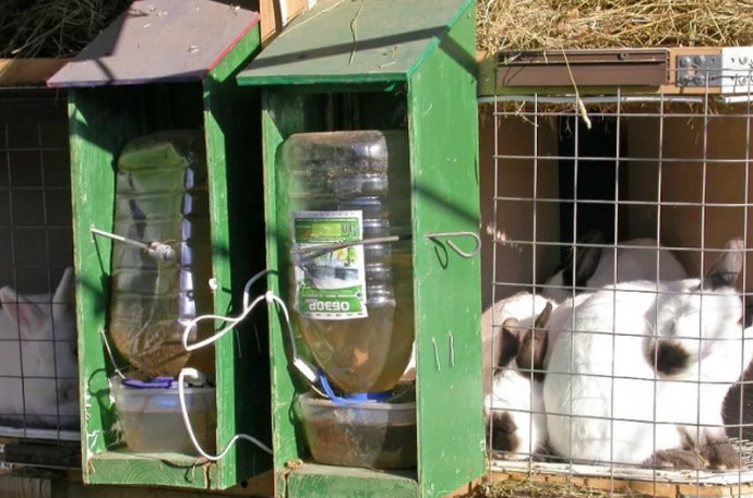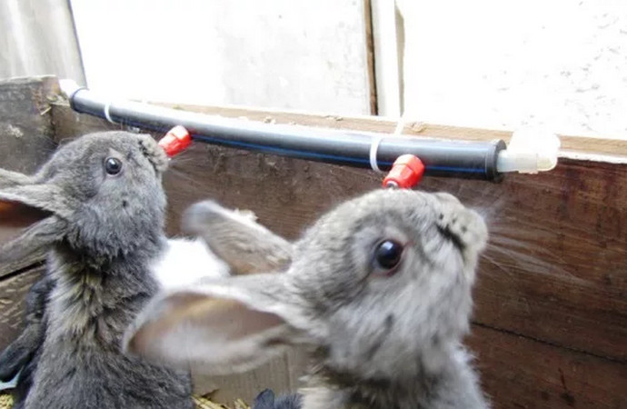Краща система для постачання кроликів питною водою, оскільки ємності складно засмітити, а вода постійно поповнюється, кролики ніколи не будуть відчувати спрагу. Конструкція своїми руками являє собою ємність для пиття внизу, закріплена на відстані 10 сантиметрів від підлоги, а вгорі над нею розташовується прикріплена бутель з рідиною, причому таким чином, що вода з пляшки періодично наповнює посудину внизу, у міру того, як нижня тара спустошується, і відбувається утворення вакууму. Система проста і відрізняється мінімумом витрат на її виготовлення.