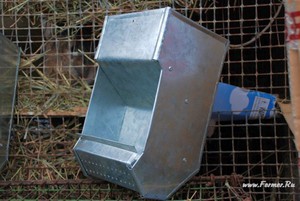 - тару для кроликів слід влаштовувати таким чином, щоб корм забруднюється якомога менше. Для цього необхідно на дні просвердлити отвори або вистилати його дрібними гратами;
