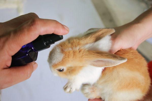 - при використанні аерозолю, балончик тримається на відстані шести сантиметрів від вух тварини. Сама обробка триває не більше двох секунд. Після розподілу речовини вуха кролика необхідно помасажувати, щоб препарат краще розподілився;