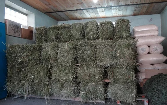 Для збереження продукції підійде критий сарай, дерев'яний настил в якій має бути споруджений на відстані 50 сантиметрів від грунту. Необхідно забезпечити провітрювання сіна.