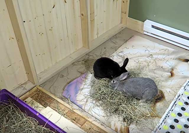 Найкраще розвісити пучки скошеної і висушеної трави вздовж внутрішніх стін крільчатника. Це поліпшить запах в приміщенні і спростить контроль того, скільки з'їдає кролик за день.