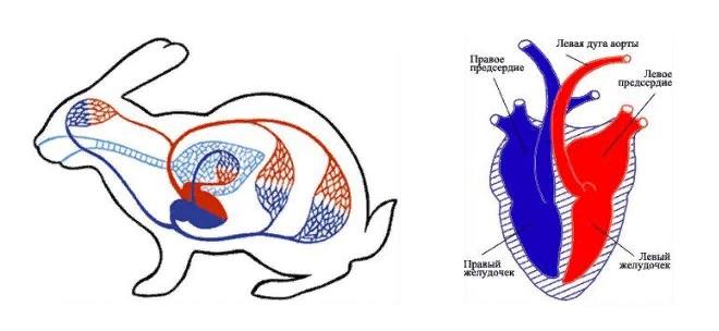 В організмі цих тварин циркулює близько 275 мл крові. Температура тіла здорових особин в холодну пору року – 38 градусів, а в тепле – 39-40 градусів. При занадто високій температурі у кролів трапляється гіпертермія, яка призводить до смерті. Серце гризунів складається з 4 камер, парних шлуночків і передсердь, а маса його становить близько 7 грамів. Частота серцебиття у них буває до 155 ударів в хвилину.