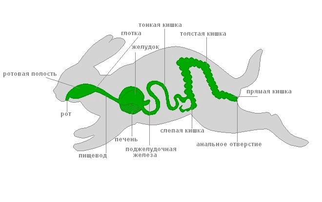 Органи травної системи дозволяють розщеплювати будь-яку їжу, яка надходить в організм кроликів. Продукти, проходять через весь шлунково-кишкового тракту протягом трьох діб.